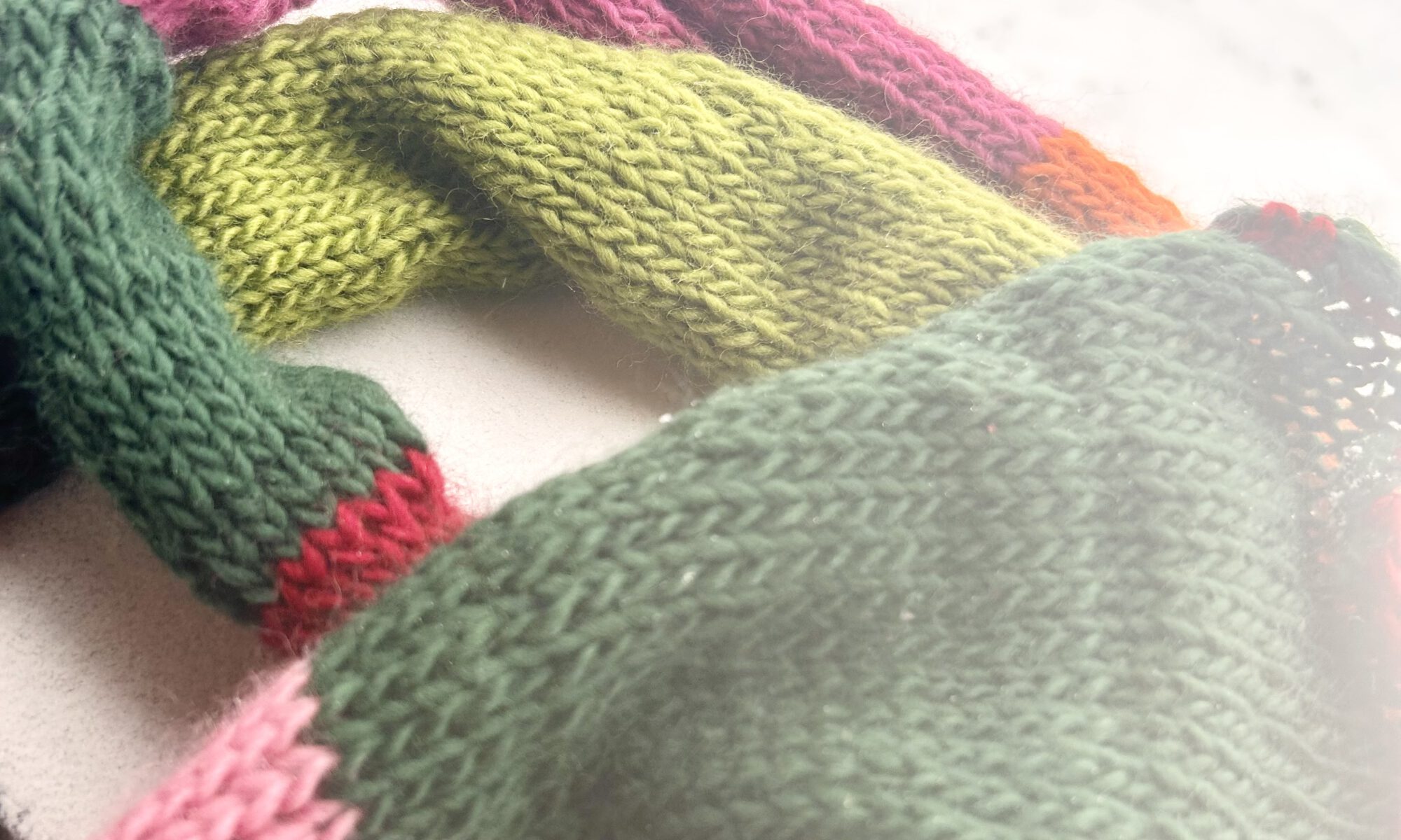 Einen solchen Schal habe ich gerade gestrickt – glatt rechts, ca. 40 cm breit und 250 cm lang – in vielen schönen Farben nach meiner Wahl.